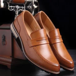 Men Dress Shoes Casual Business Fashion Genuine Leather Low Heel British Style Classic Slip-on Penny Loafers Zapatos De Hombre
